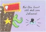 Er hat jedoch Angst vorm Zahnarzt, traut sich dann aber doch.